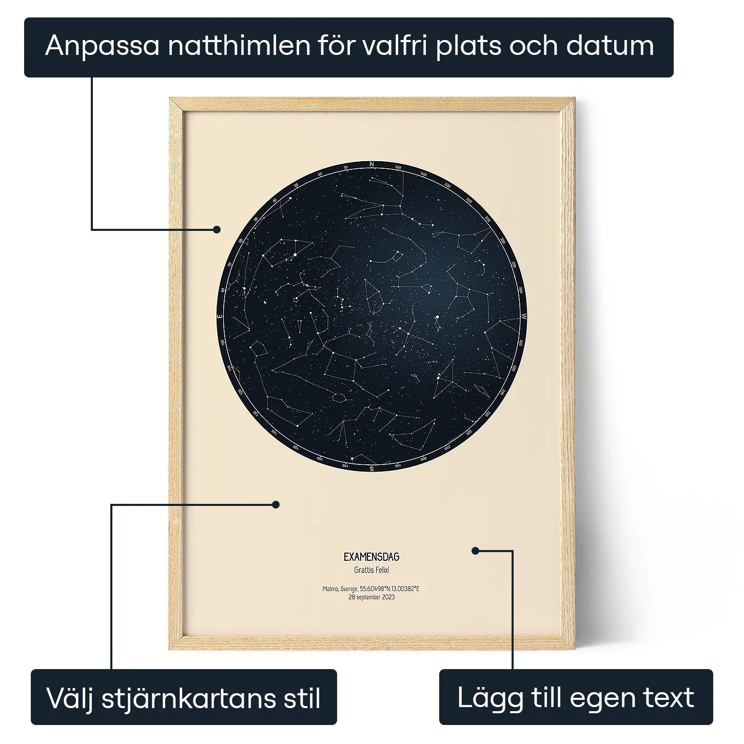 - Skapa en personlig stjärnkarta baserad på vald plats och datum