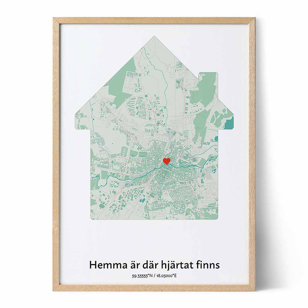 Det är enkelt och roligt att anpassa en Föräldrarnas hus-karta! Först väljer du hur din karta ska se ut. Sedan anger du den plats som du vill visa upp och den symbol som du vill ha med. Du kan också skriva personliga meddelanden och citat om du vill! När alla dina val är gjorda kan du välja storlek och format på ditt tryck. Du kan välja mellan en affisch, en canvas, ett inramat konstverk eller en direkt nedladdningsbar fil som du kan skriva ut lokalt. Med så många alternativ för att anpassa kartan kan du skapa en unik och meningsfull gåva som dina föräldrar kommer att uppskatta i många år framöver!