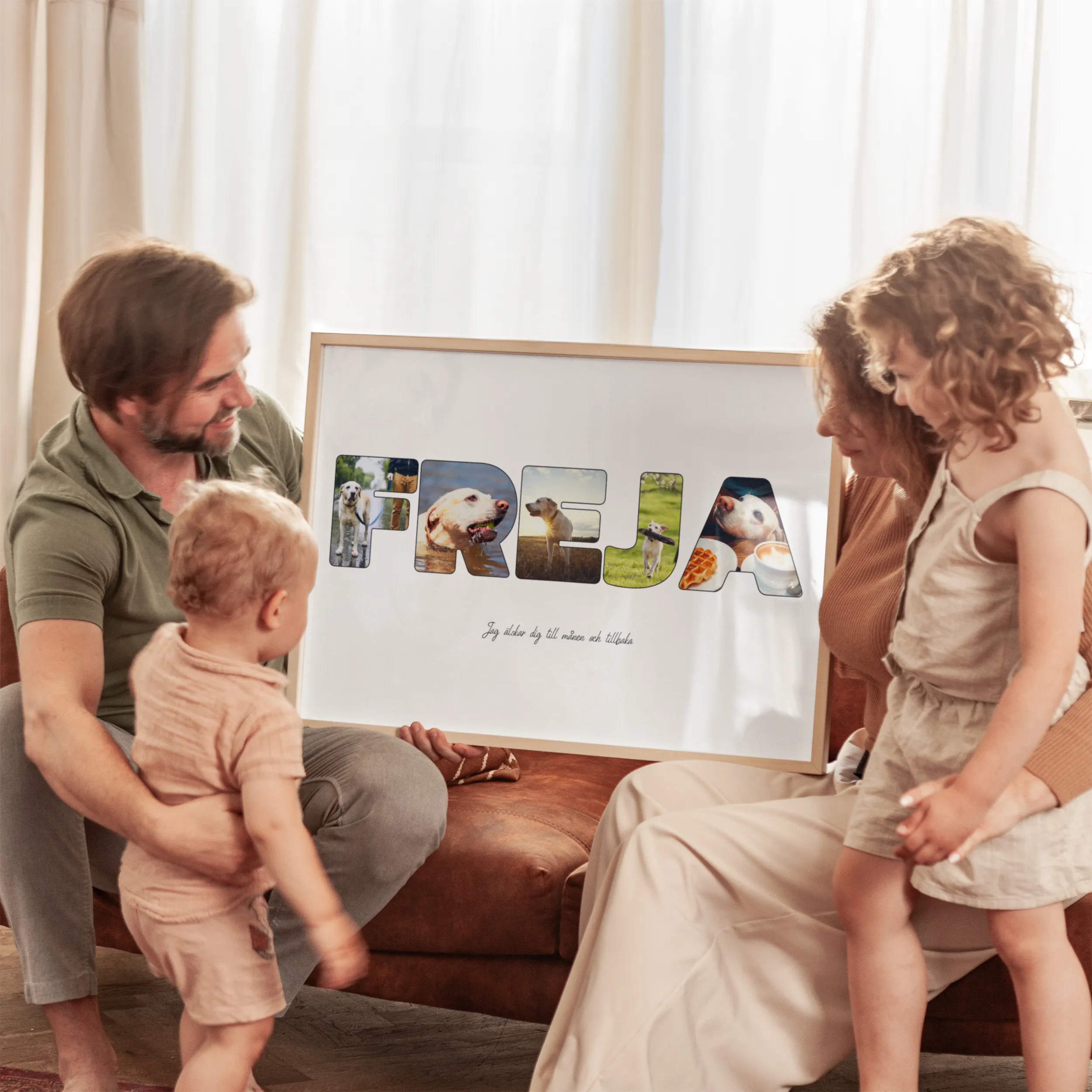 Beställ ditt fotocollage med hundbokstäver idag och ge hundälskaren i ditt liv en gåva som de kommer att uppskatta för alltid. Upplev skönheten i en personlig och innerlig present som hyllar den villkorslösa kärlek och kamratskap som bara en hund kan erbjuda.
