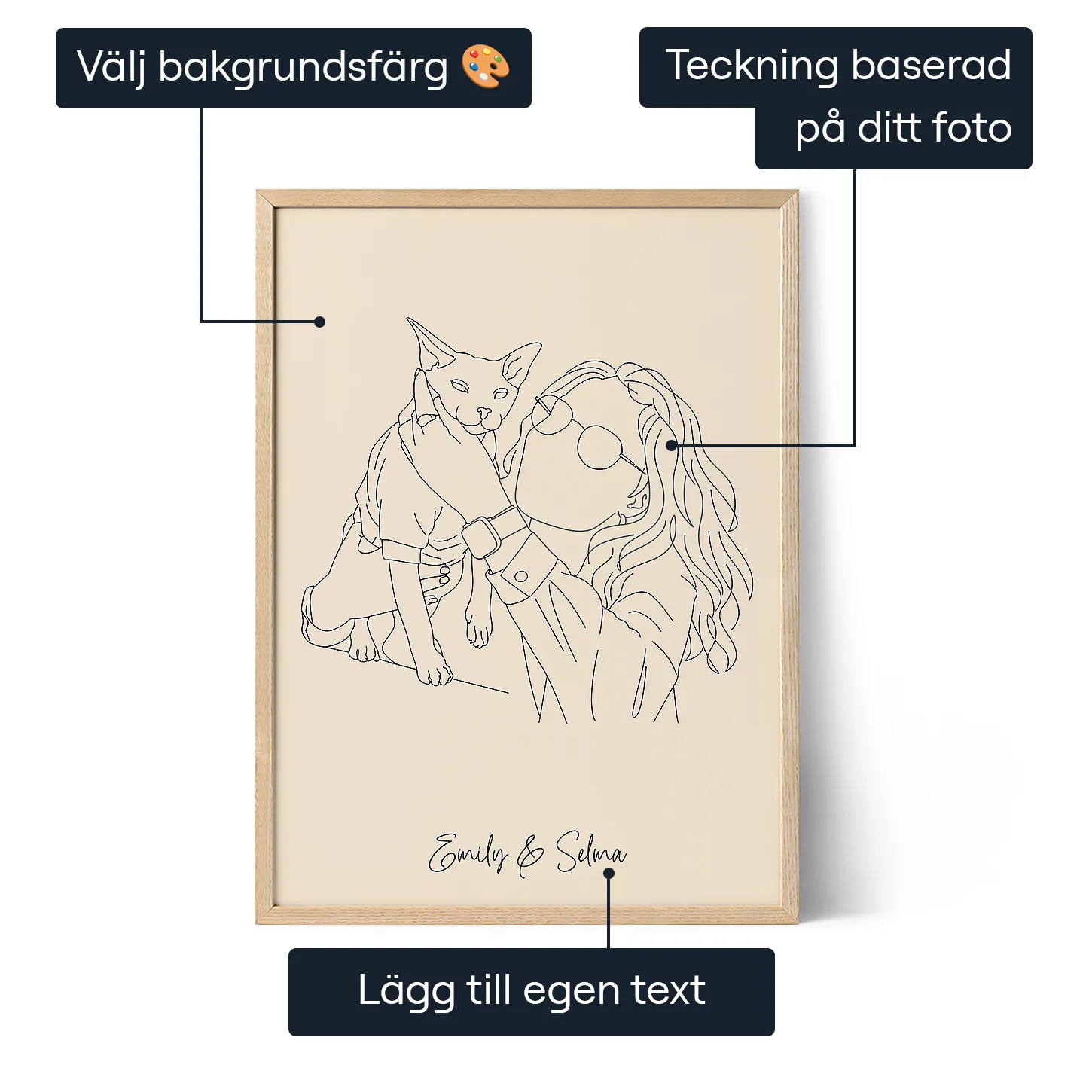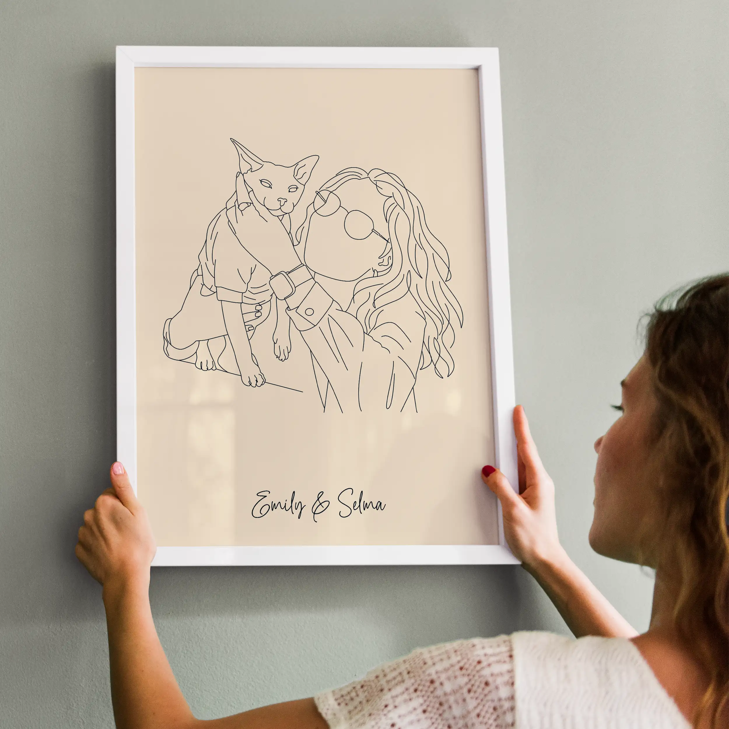 Fånga det speciella bandet med din katt genom att förvandla ett favoritminne till ett minimalistiskt linjeporträtt