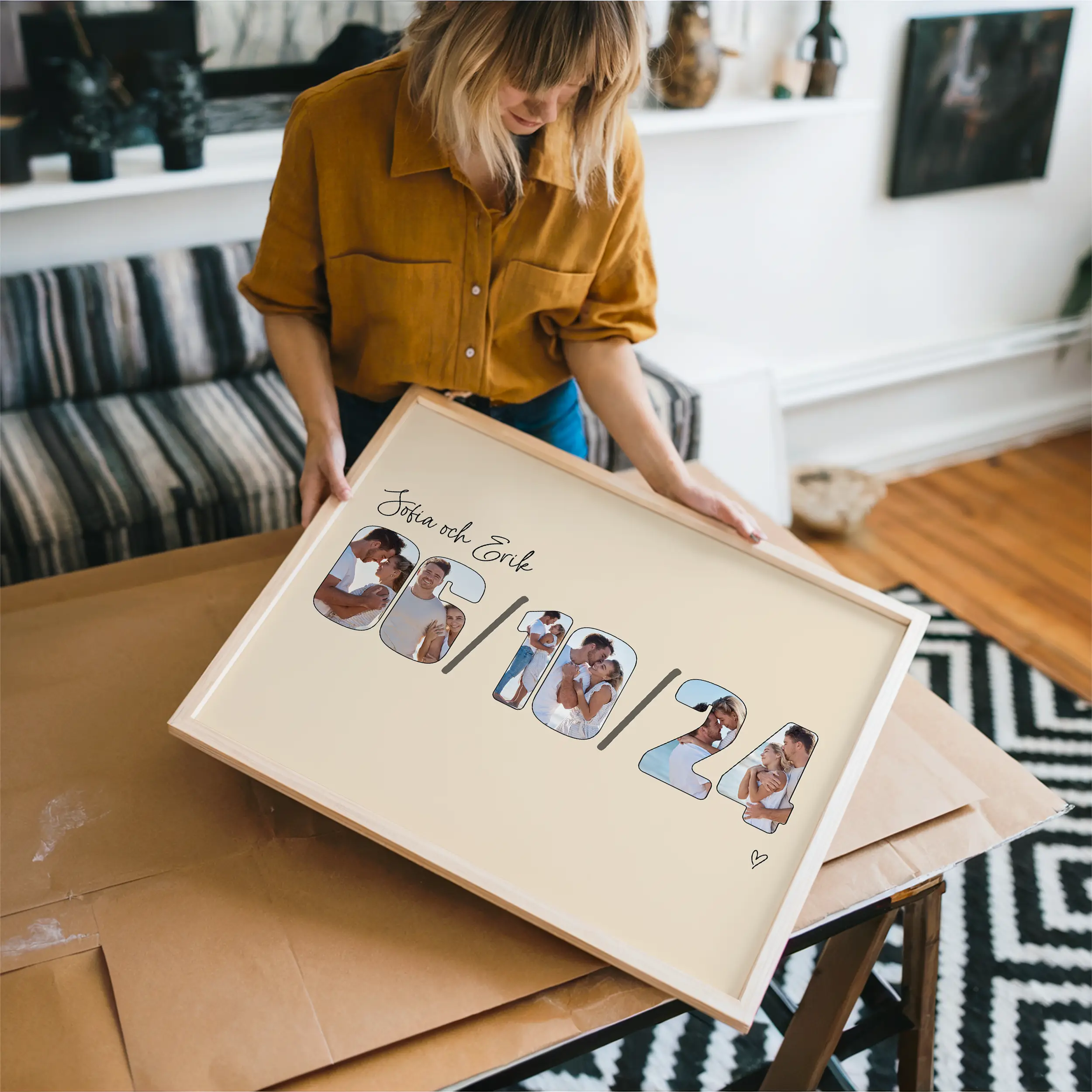 Ett personligt fotokollage i formen av ert årsdagsdatum – fullt av kärlek och delade minnen