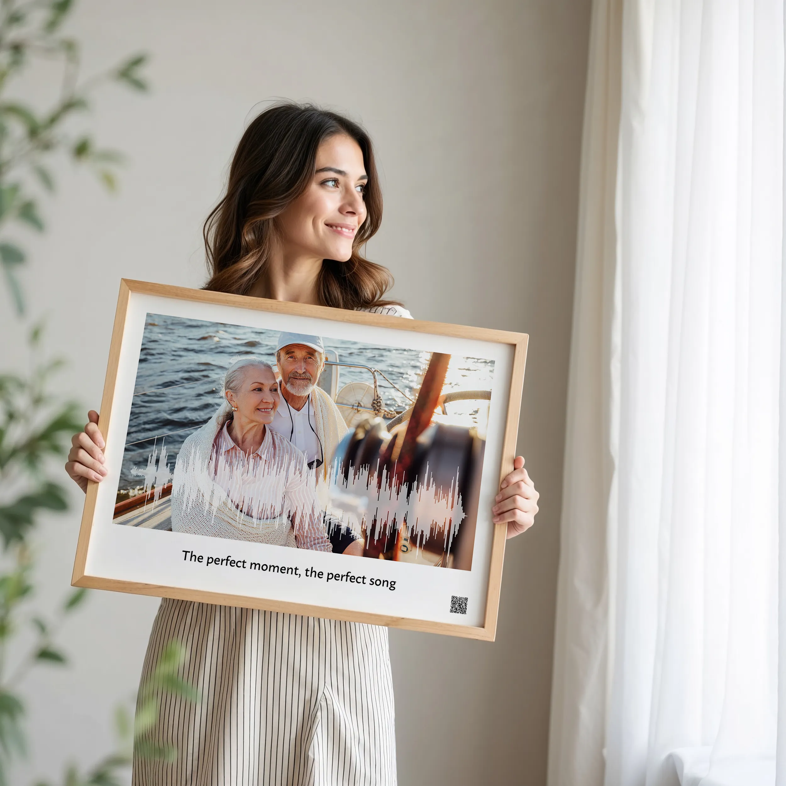 Vår ljudvågskonst låter dig fånga ett ljud som du spelar in och sedan anpassa detta till visuellt konstverk. Ladda upp ditt ljud, välj din design så sköter vi resten!