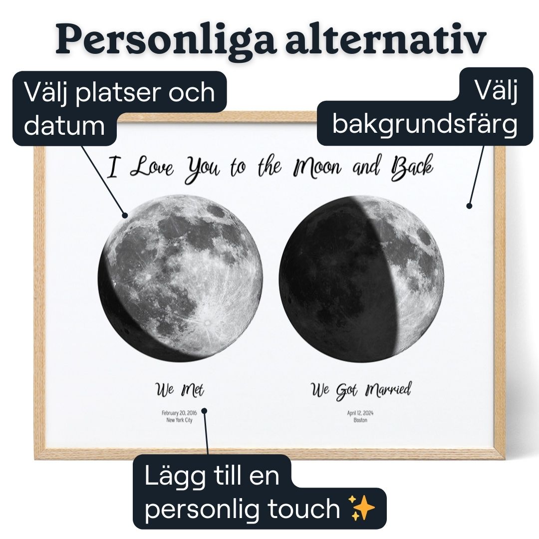 Missa inte - förvandla dessa speciella stunder till ett fantastiskt konstverk som du och din själsfrände kommer att vårda för alltid. Beställ din personliga "Moon Phase Soulmates" nu och ge en gåva som verkligen inte är av denna värld.