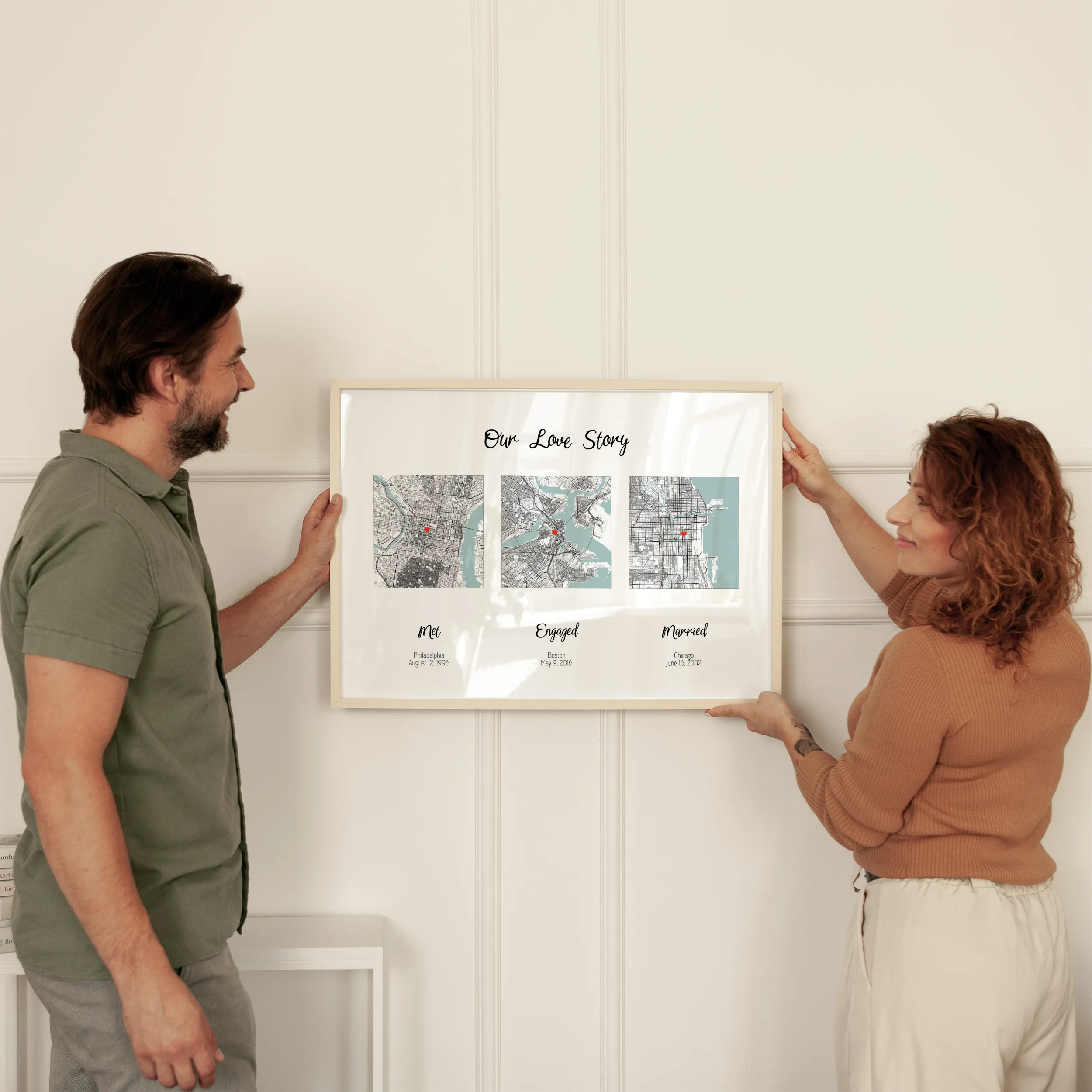 Fira 3 milstolpar i ditt förhållande med en personlig karta, en unik och sentimental minnesgåva att bevara