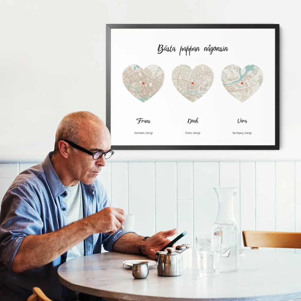 Även om det fysiska avståndet kan hålla er isär, kan en present till din pappa hjälpa er att känna er närmare än någonsin. Din pappa kommer att tänka på dig varje gång han ser kartan på sin vägg, dessutom kommer han alltid ha en fantastisk historia att berätta för gästerna som besöker.