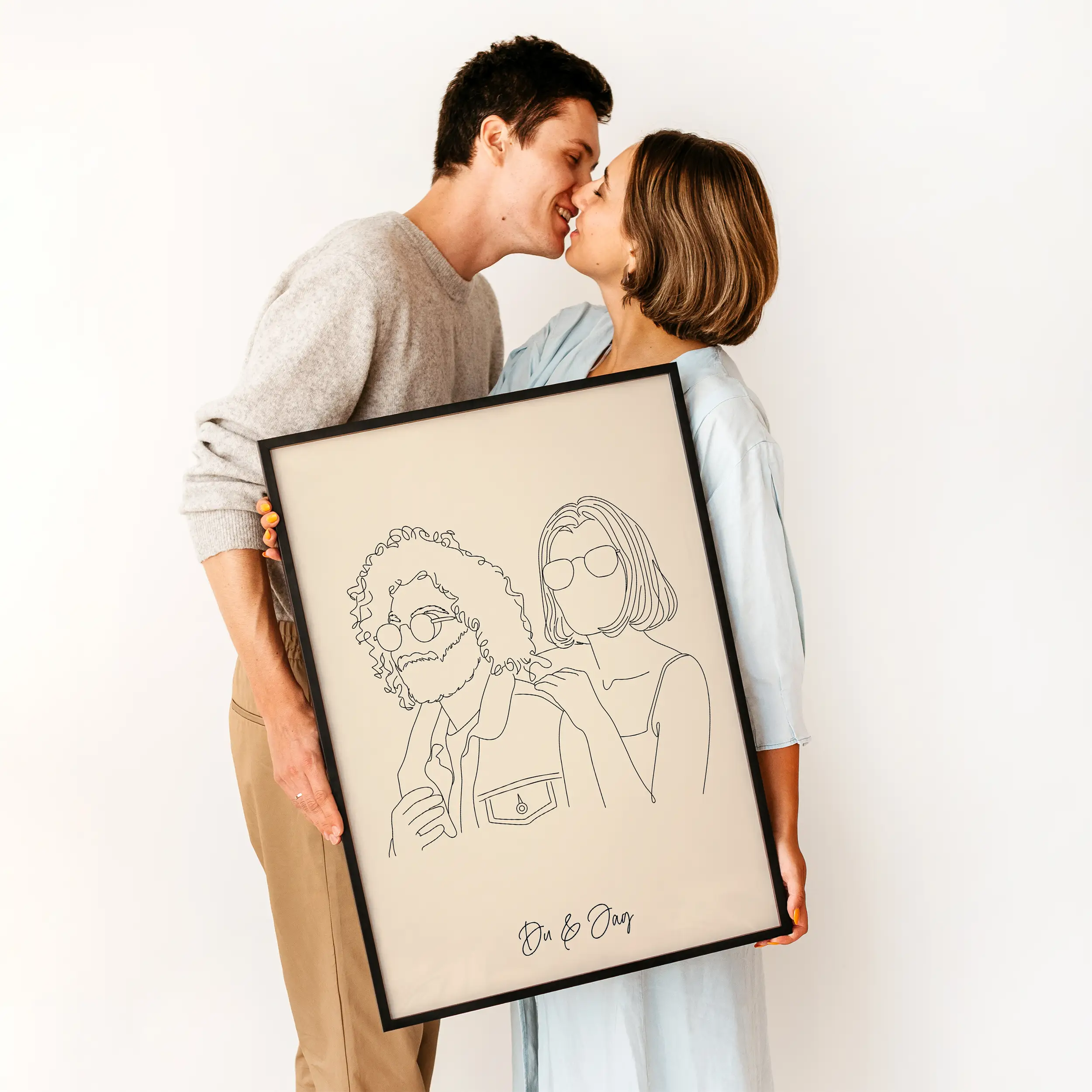 Dela med dig av ett foto som visar magin i ert förhållande. Våra konstnärer tecknar noggrant för hand och ser till att konstverket speglar romantiken och samhörigheten mellan dig och din partner.