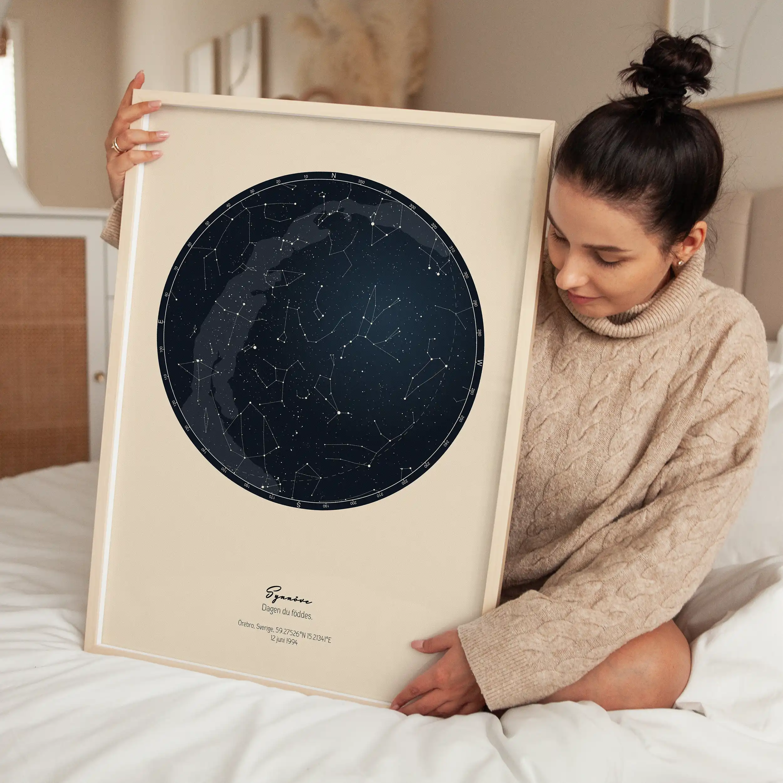 Våra kunder älskar Positive Prints himmelsdiagram av många anledningar, men vår vanligaste förfrågan är för presentsyften. Ett anpassat stjärndiagram ger en älskad gåva. Speciellt för födseln av ett barn.