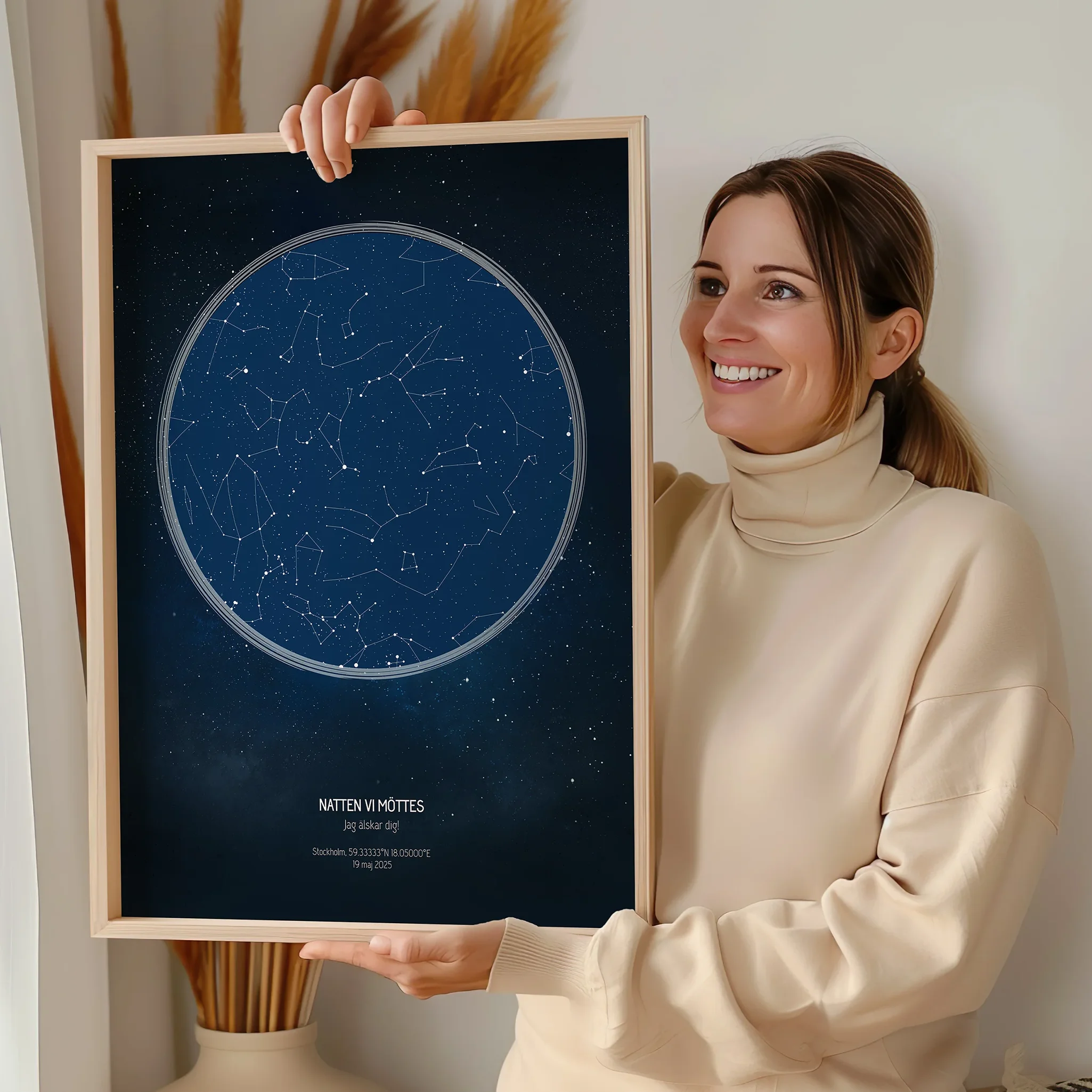 Föreställ er att ta med natthimlen från er första dejt direkt in i ert vardagsrum eller sovrum. Er affisch kommer att vara en ständig påminnelse om den där kvällen som förändrade era liv för alltid.