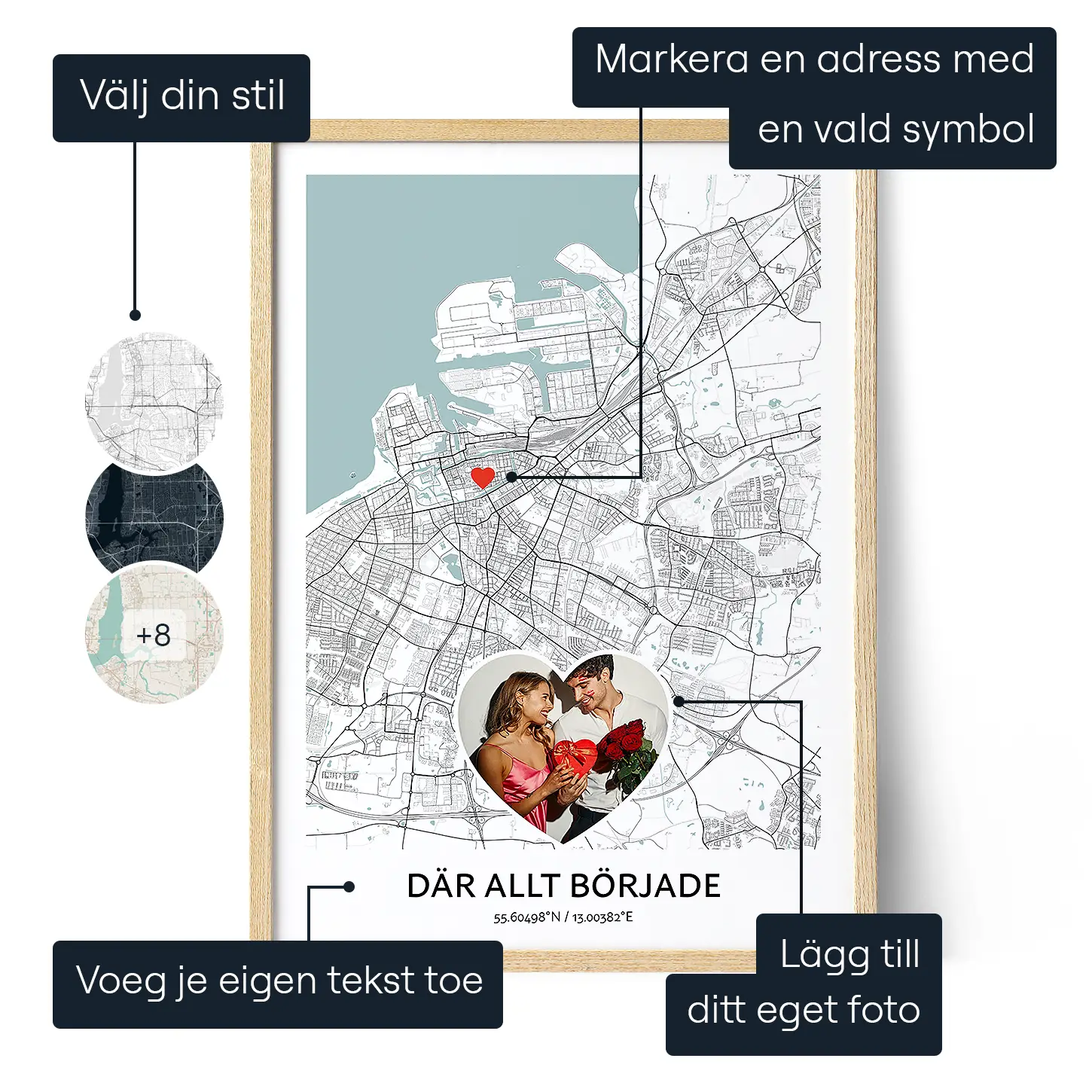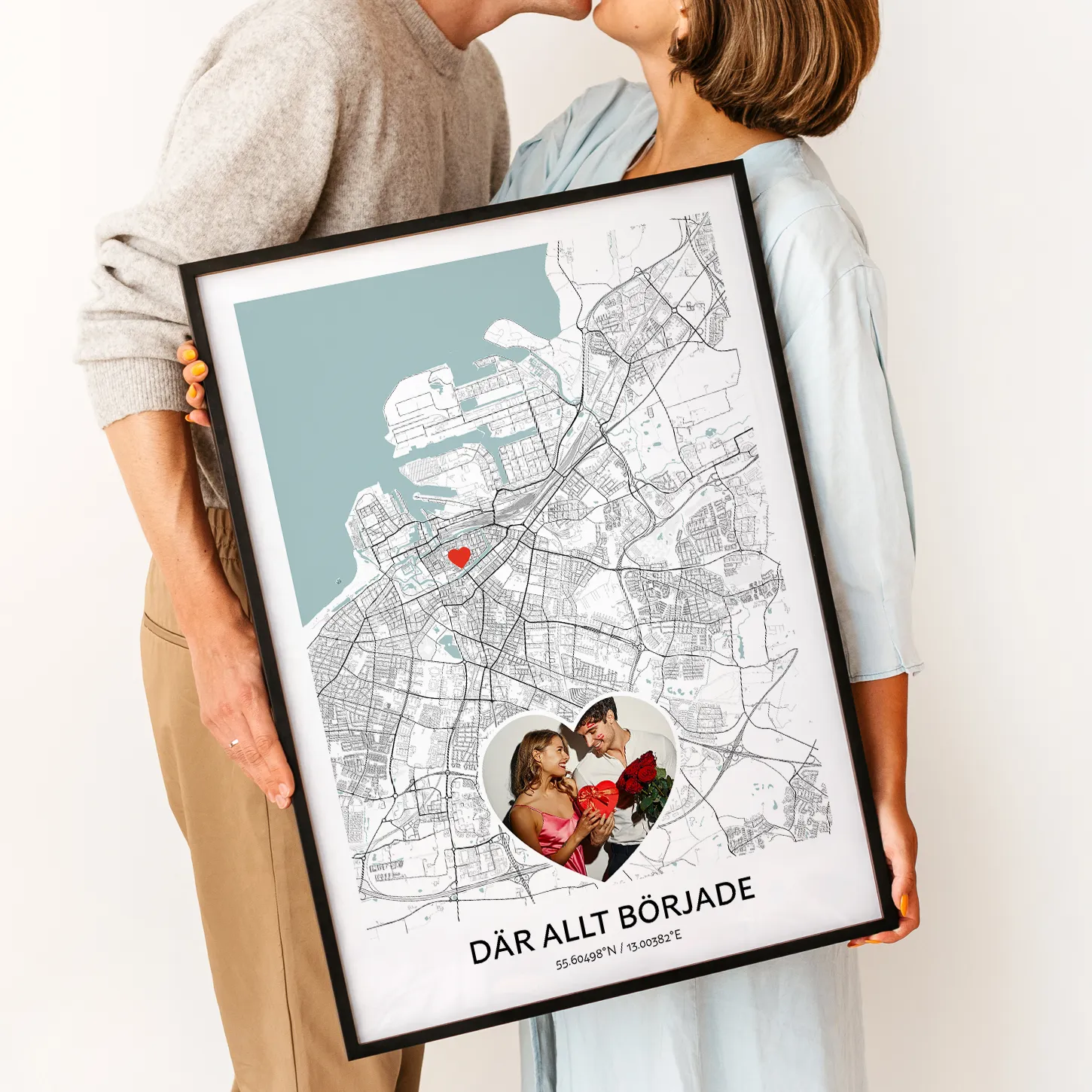 Kartan Where It All Began med foto är en unik och omtänksam present till årsdagar, födelsedagar, alla hjärtans dag, bröllop eller andra speciella tillfällen. Fira er resa tillsammans genom att ge en gåva som fångar kärnan i ert förhållande.
